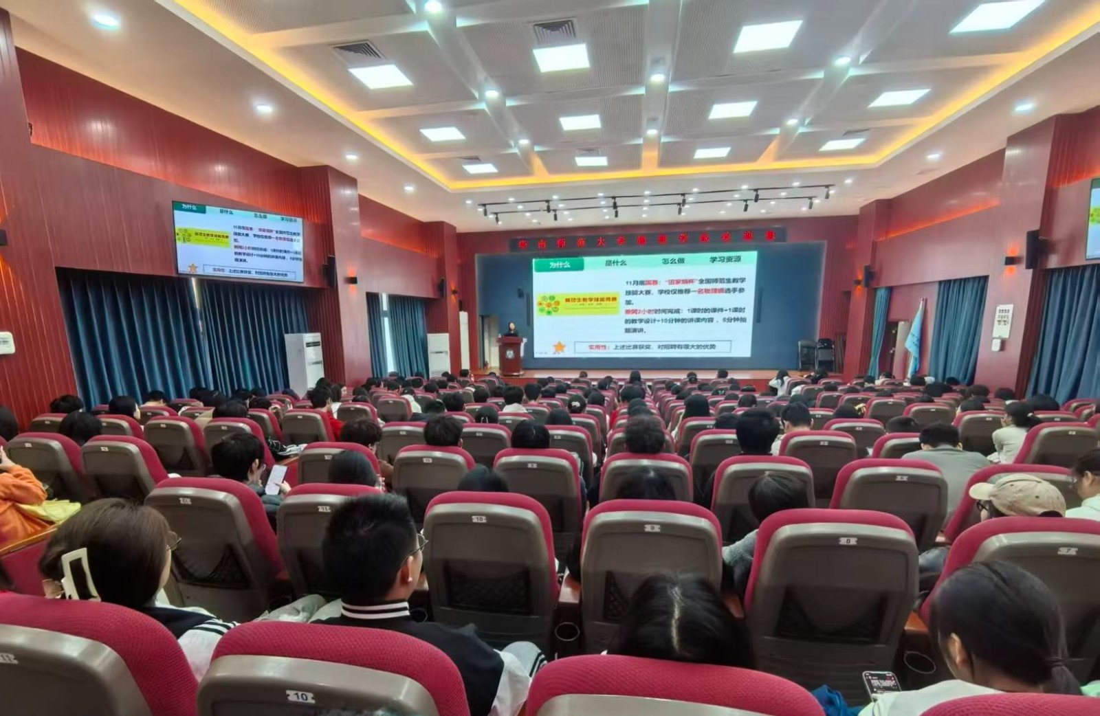两位学姐的分享干货满满、针对性极强,既有理论指引又有实操方法,精准解答师范生教学备赛与课件制作中的常见困惑。在场学生认真聆听、积极记录,既厘清了师范技能提升思路,也为今后教学实践与职业规划明晰方向,收获颇丰。