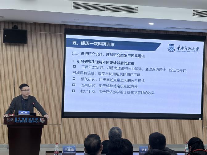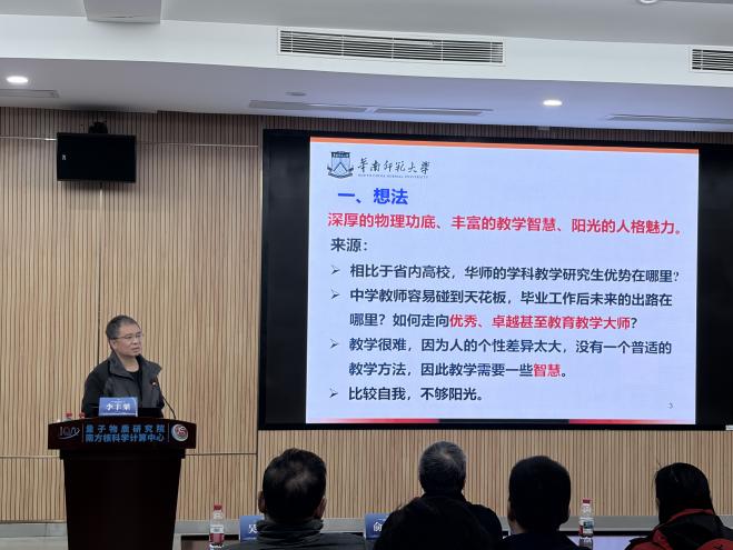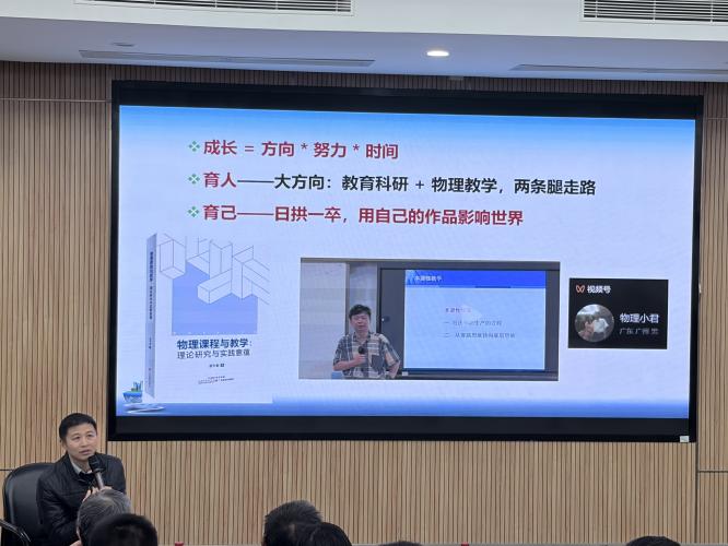 多位校内导师还分享了特色培养理念与实践路径。李丰果教授以《“厚基础、增智慧”学科教学硕士培养经验分享》为题,提出培养需兼顾学生物理功底、教学智慧与人格素养。肖洋教授以《做好“四个一”:学科教学(物理)研究生培养的实践与思考》为题,分享了 “设计一个创新实验、参加一场教学比赛、经历一次科研训练、形成一个学术共同体” 的培养框架。许桂清副教授以《“科研+教学两手抓”物理教育硕士培养感想分享》为题,提出了双线并行的培养理念及“理论-实践-成果”的闭环培养模式。