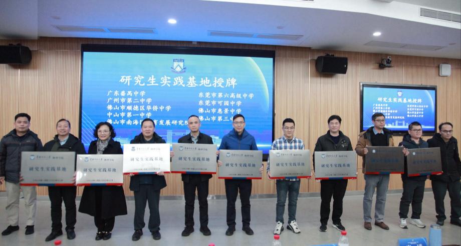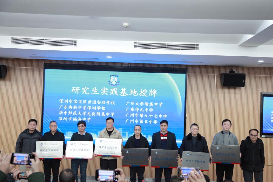 开幕式中,举行研究生实践基地授牌仪式,本次学校为物理学院设立25个研究生实践基地,覆盖广州、深圳等地优质中学。研究生院黄锐副院长与物理学院薛正远副院长共同为基地代表授牌,进一步深化校地合作、拓展实践育人平台,为教育硕士成长提供更广阔的实践空间。